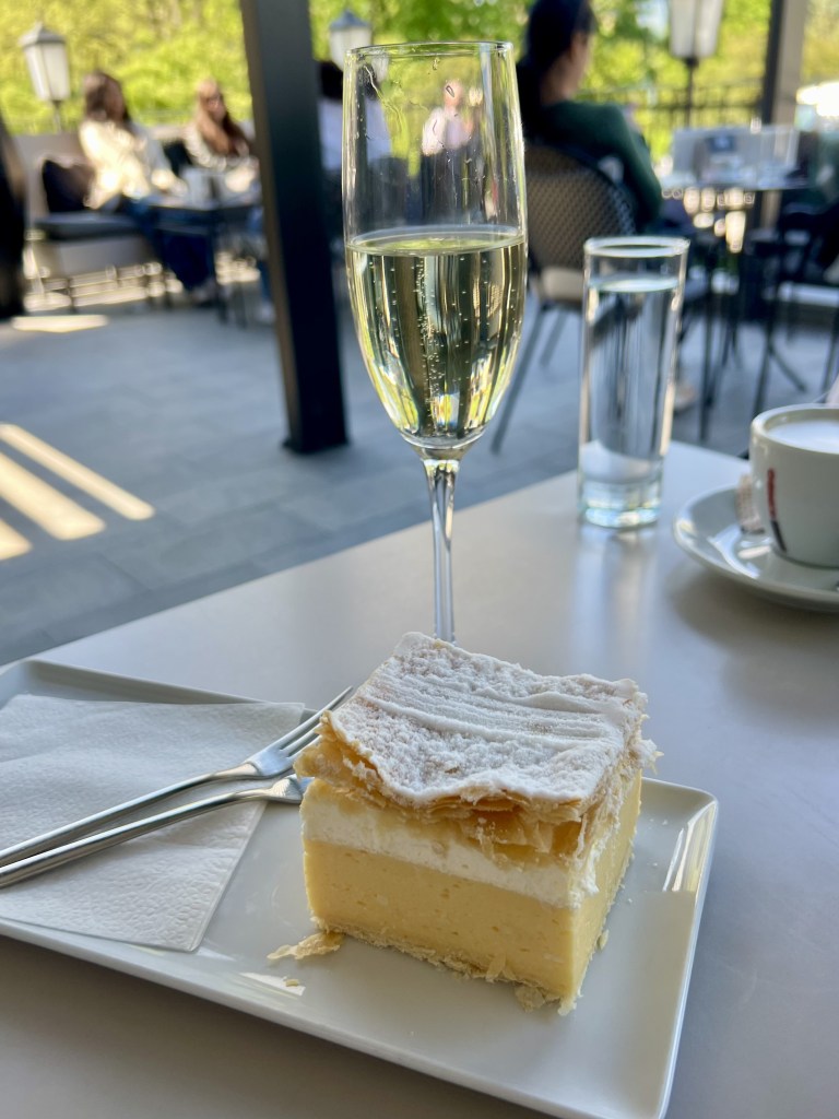 We boarded the bus around 8pm on a Friday night and arrived at Lake Bled, our first stop around 8 the next morning. K and I opted out of the optional boat ride, walking the circumference of the lake instead. The day was perfectly warm; the sky perfectly blue; the water a brilliant shade of turquoise. An hour is all it takes to walk the entirety of the lake – and at the end, we sat in a cafe and shared a piece of Lake Bled’s signature cake: kremna rezina.